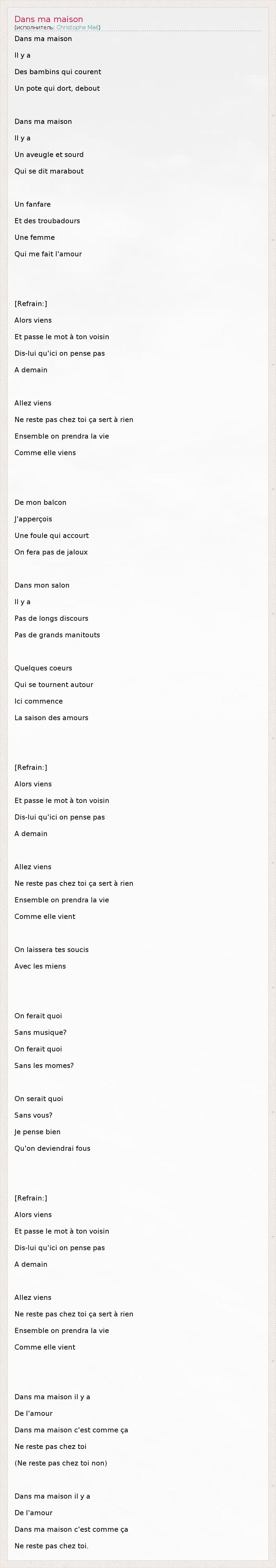 А как ты думаешь, о чем песня "Dans ma maison" ?