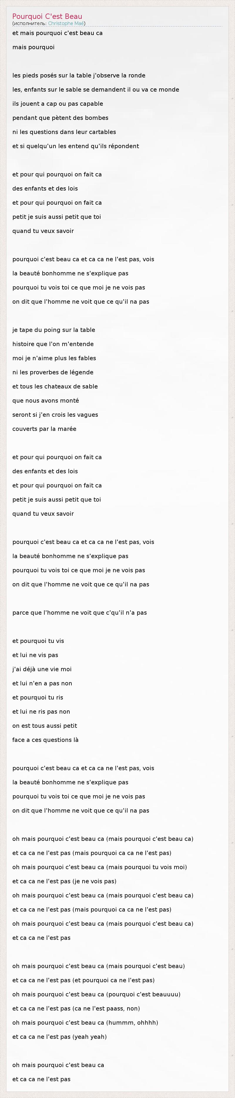 А как ты думаешь, о чем песня "Pourquoi C'est Beau" ?