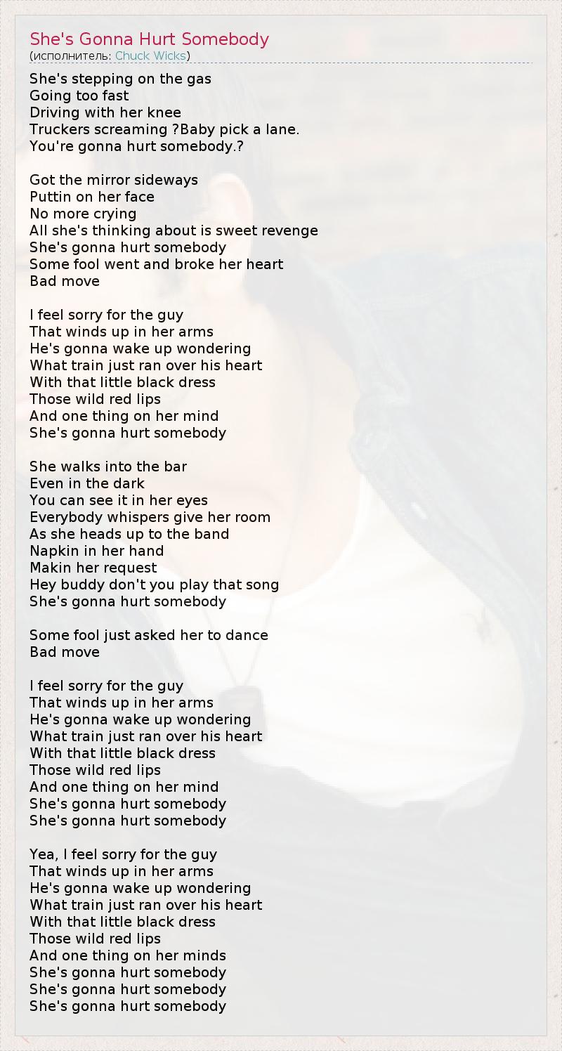 ГлавнаяИсполнителиChuck WicksShe's Gonna Hurt Somebody