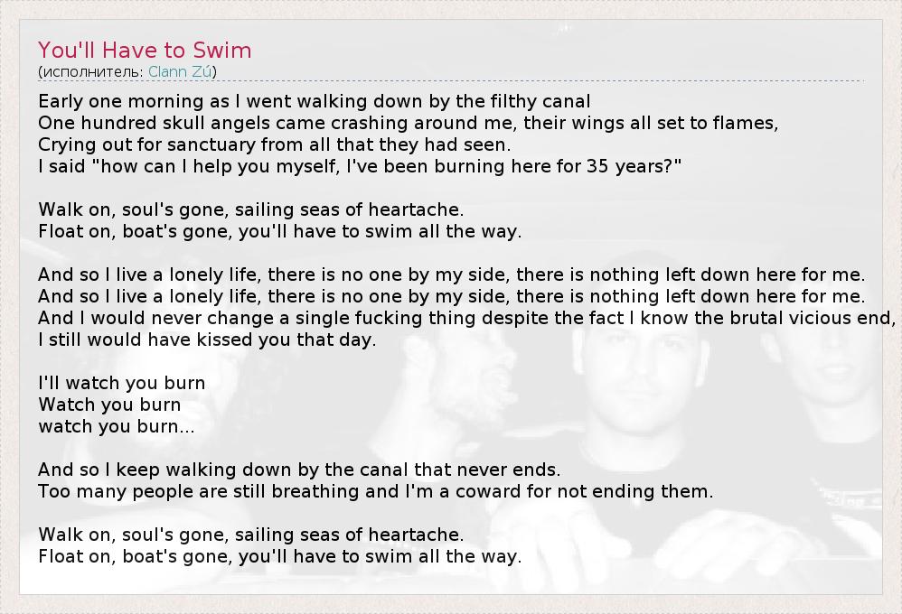 А как ты думаешь, о чем песня "You'll Have to Swim" ?