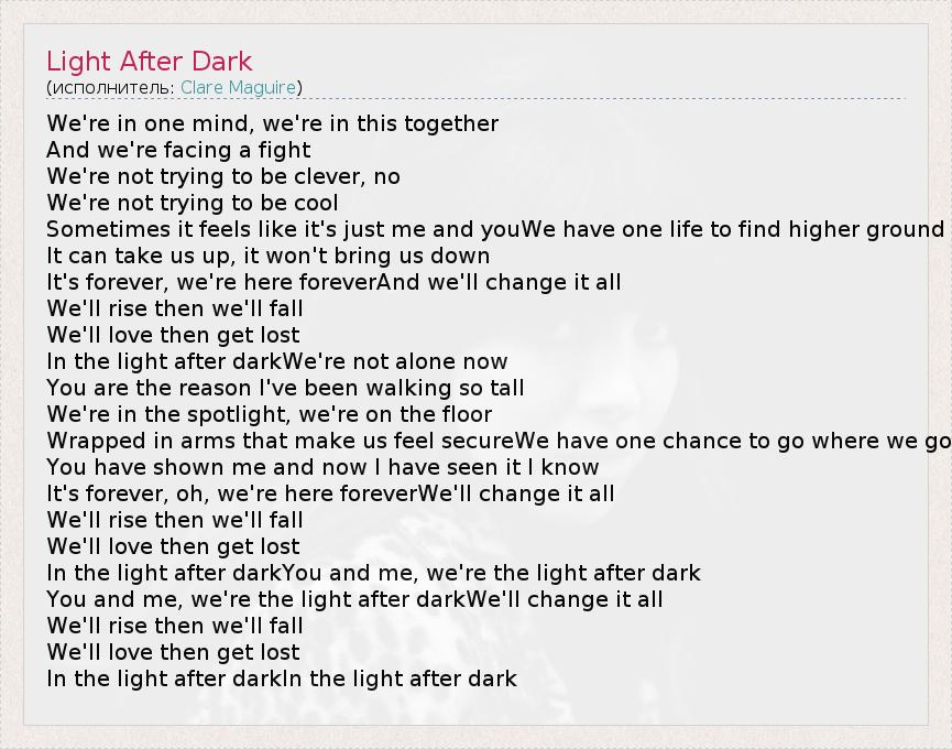 А как ты думаешь, о чем песня "Light After Dark" ?