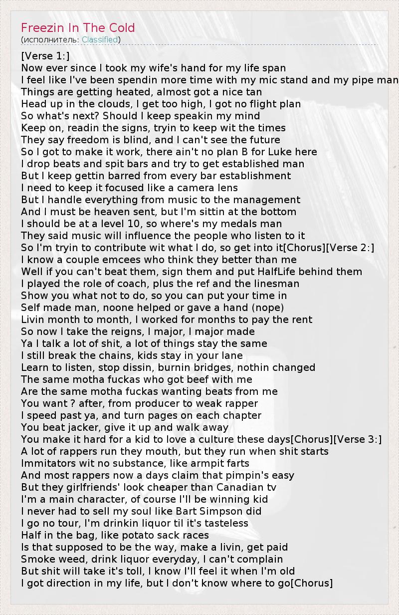 А как ты думаешь, о чем песня "Freezin In The Cold" ?