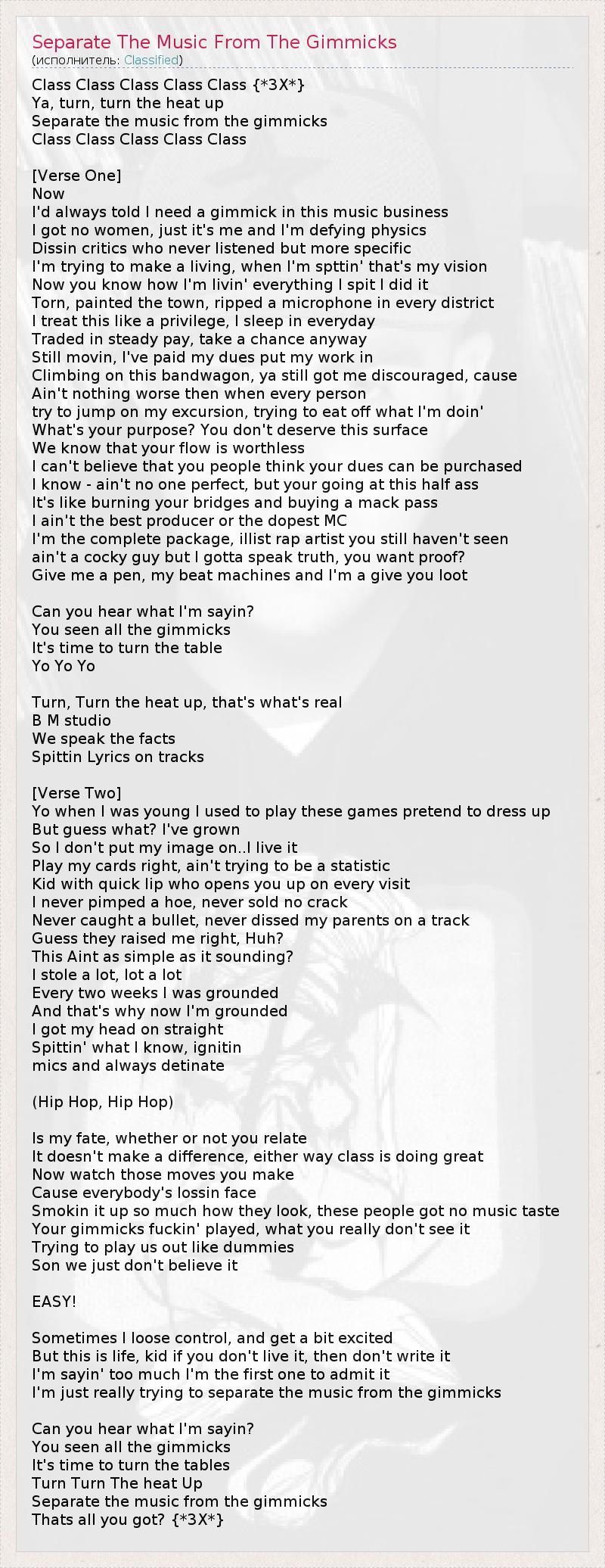 А как ты думаешь, о чем песня "Separate The Music From The Gimmicks" ?