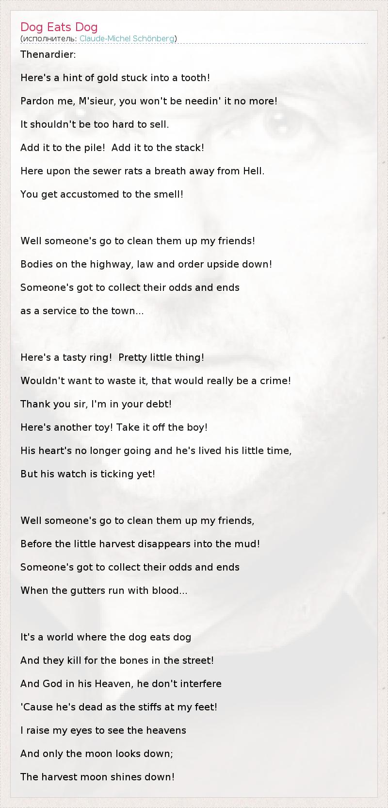 А как ты думаешь, о чем песня "Dog Eats Dog" ?