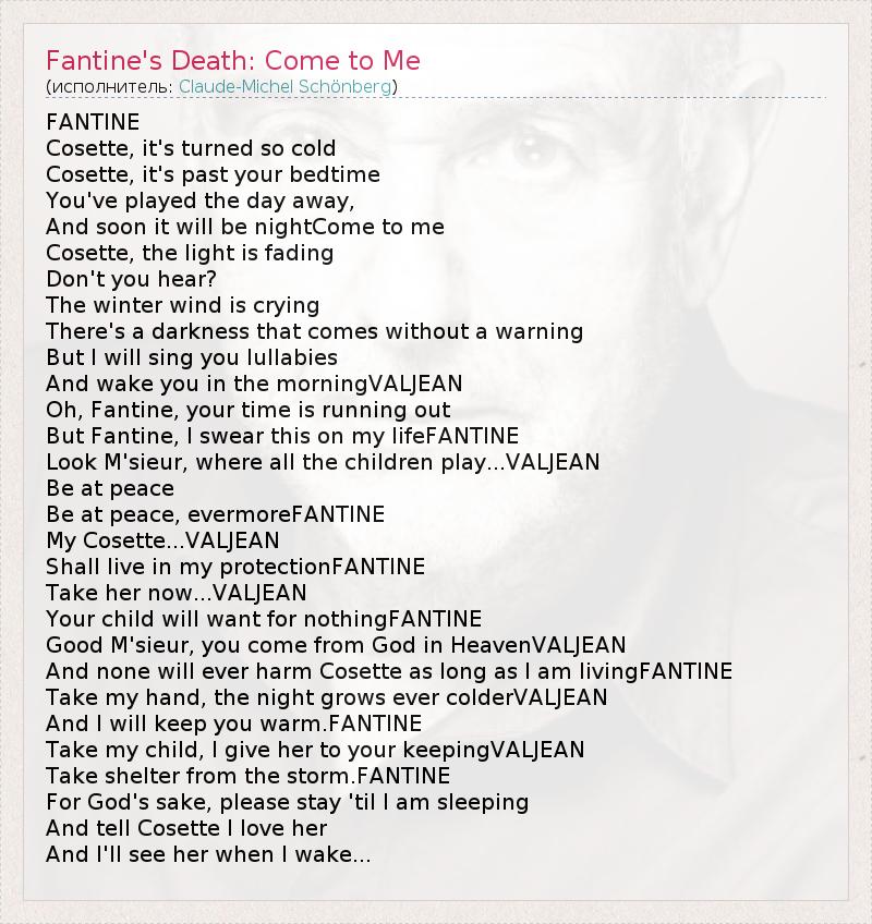 А как ты думаешь, о чем песня "Fantine's Death: Come to Me" ?