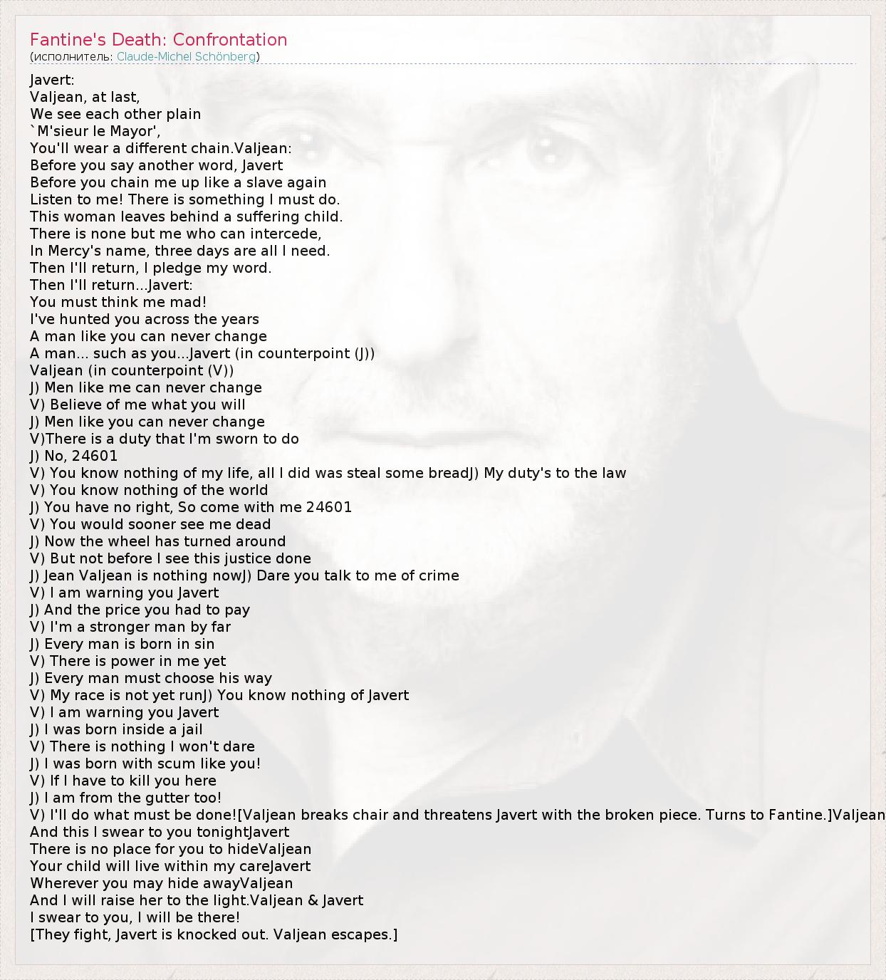 А как ты думаешь, о чем песня "Fantine's Death: Confrontation" ?