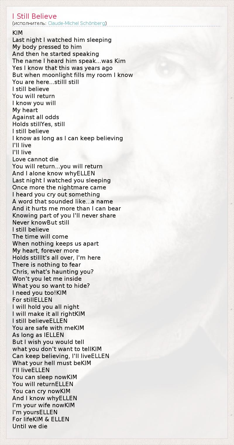 А как ты думаешь, о чем песня "I Still Believe" ?