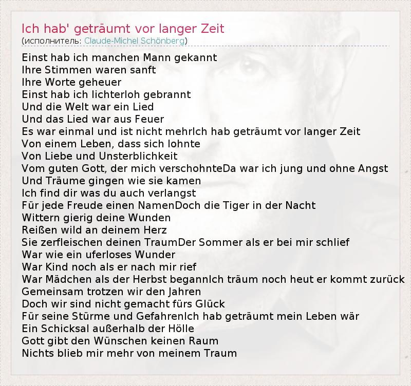 ГлавнаяИсполнителиClaude-Michel SchönbergIch hab' geträumt vor langer Zeit