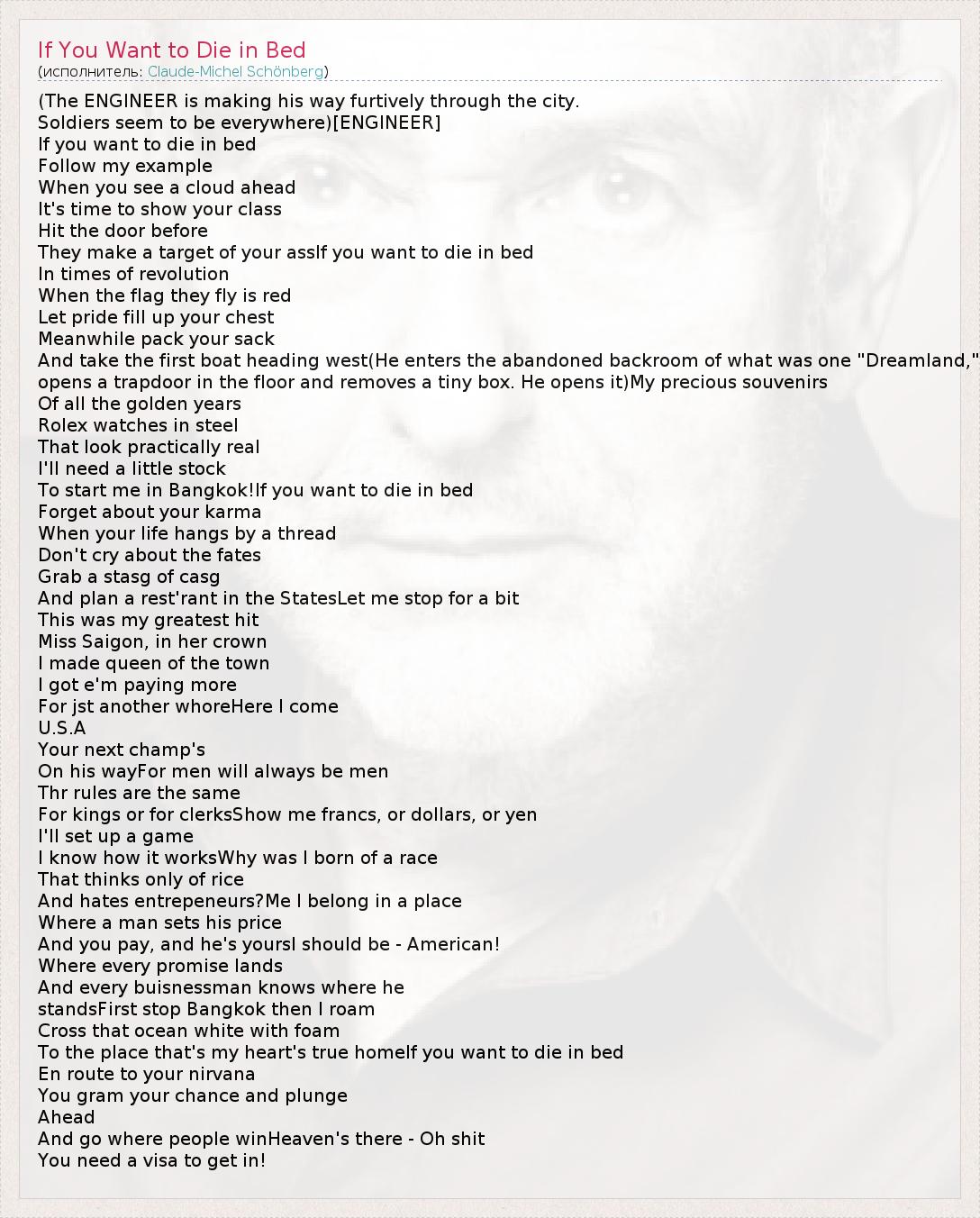 А как ты думаешь, о чем песня "If You Want to Die in Bed" ?