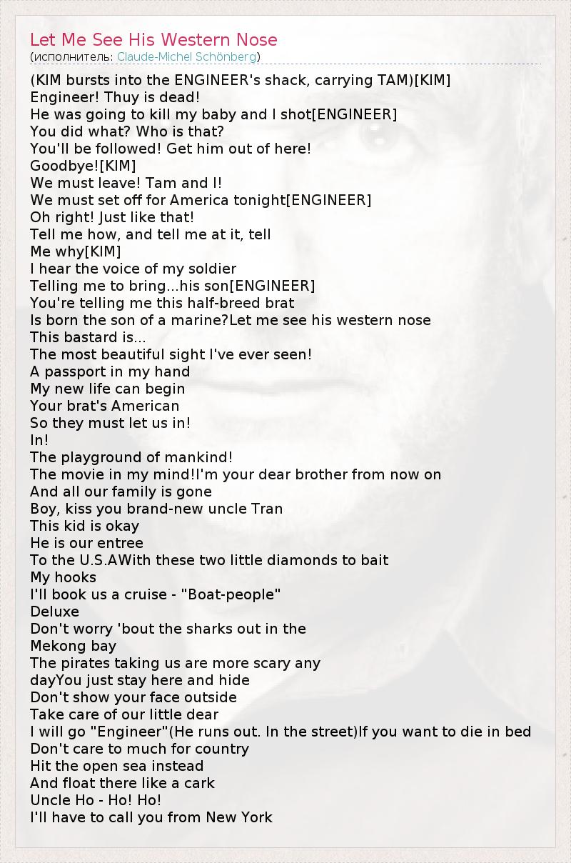А как ты думаешь, о чем песня "Let Me See His Western Nose" ?