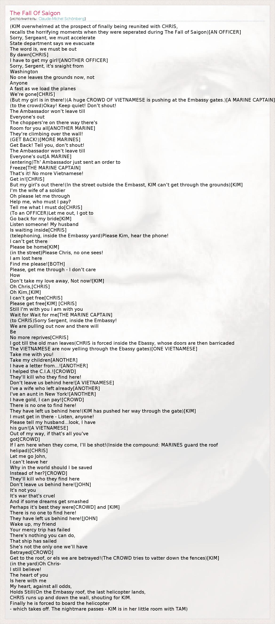 А как ты думаешь, о чем песня "The Fall Of Saigon" ?