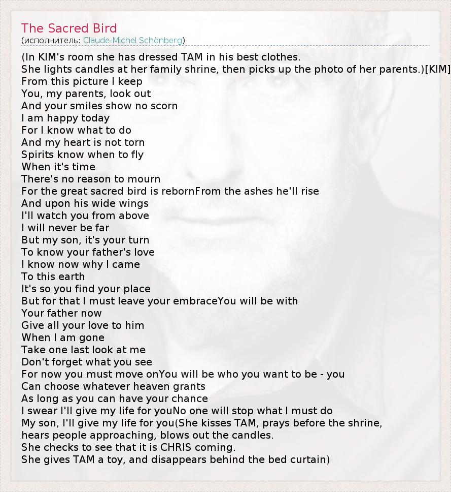 А как ты думаешь, о чем песня "The Sacred Bird" ?