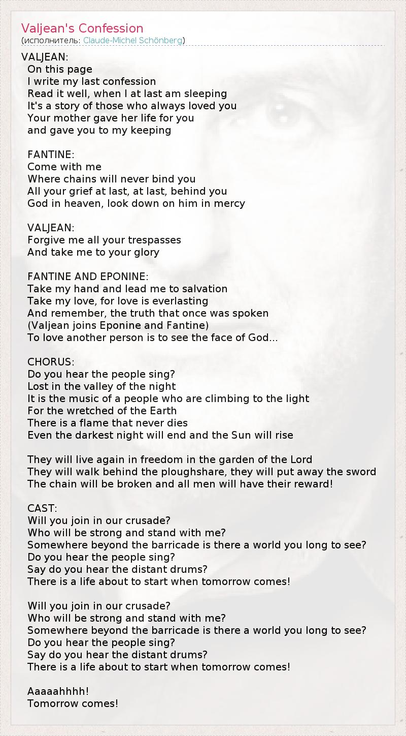 А как ты думаешь, о чем песня "Valjean's Confession" ?