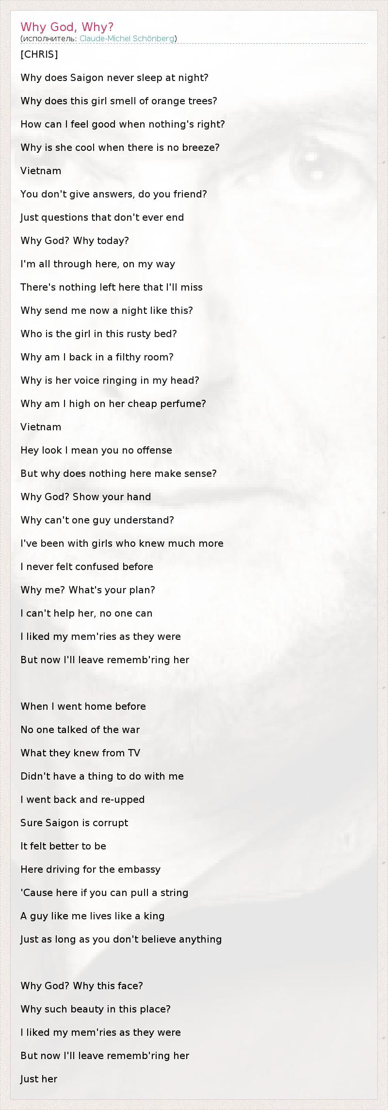 А как ты думаешь, о чем песня "Why God, Why?" ?