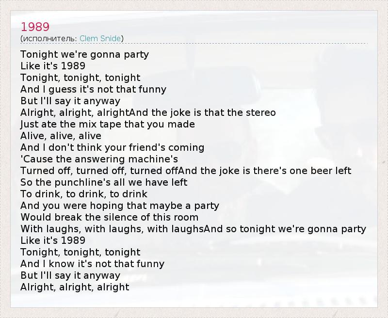 А как ты думаешь, о чем песня "1989" ?