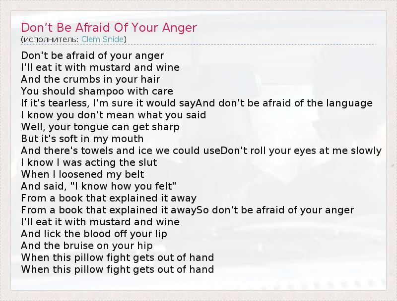А как ты думаешь, о чем песня "Don’t Be Afraid Of Your Anger" ?