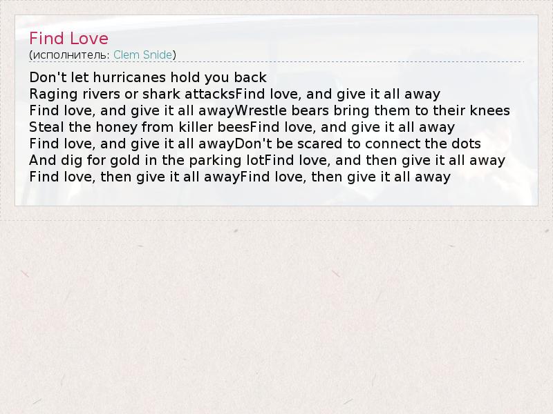 А как ты думаешь, о чем песня "Find Love" ?
