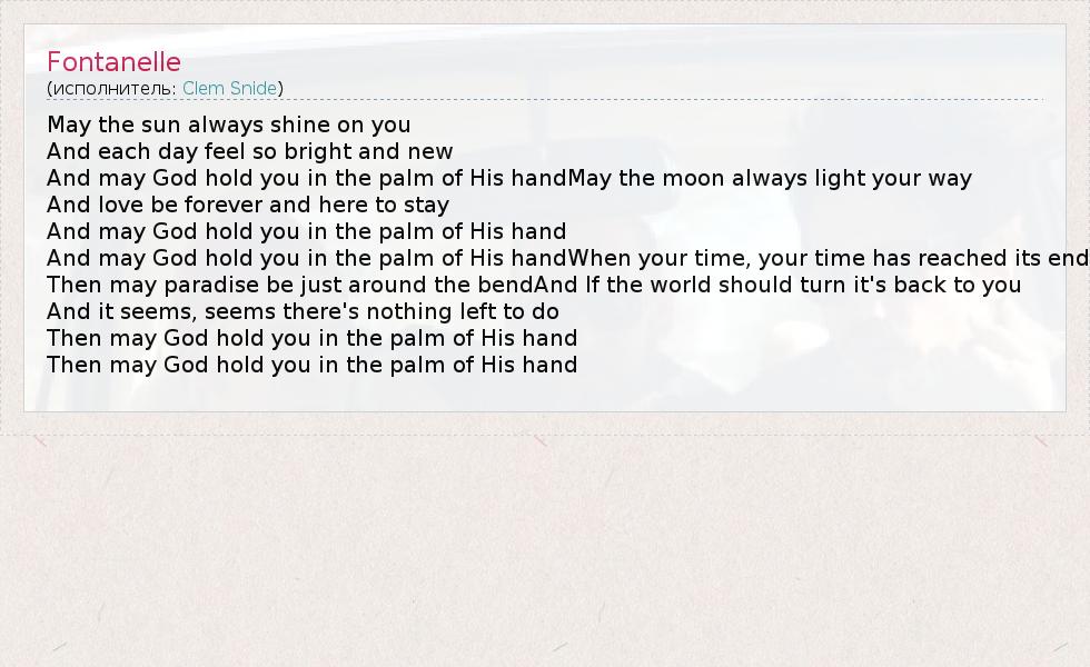 And may God hold you in the palm of His handWhen your time, your time has reached its end