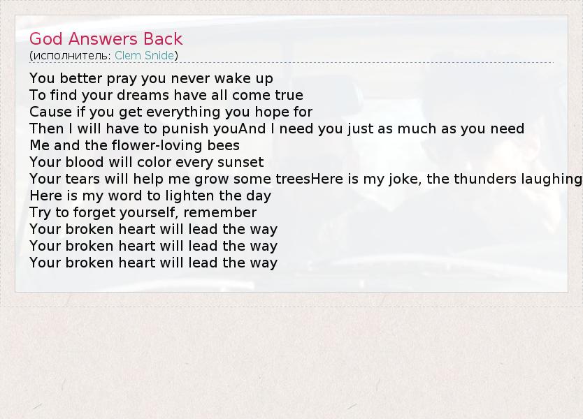 А как ты думаешь, о чем песня "God Answers Back" ?