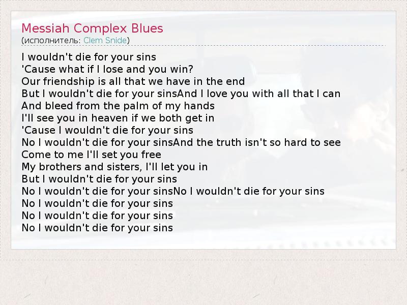 А как ты думаешь, о чем песня "Messiah Complex Blues" ?