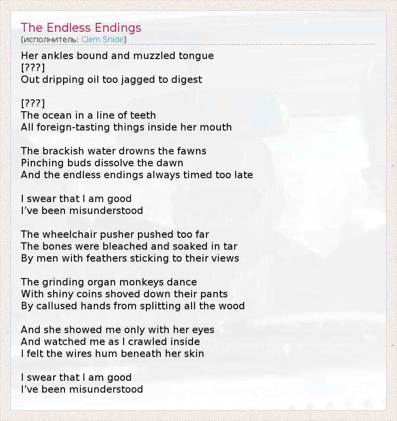 А как ты думаешь, о чем песня "The Endless Endings" ?