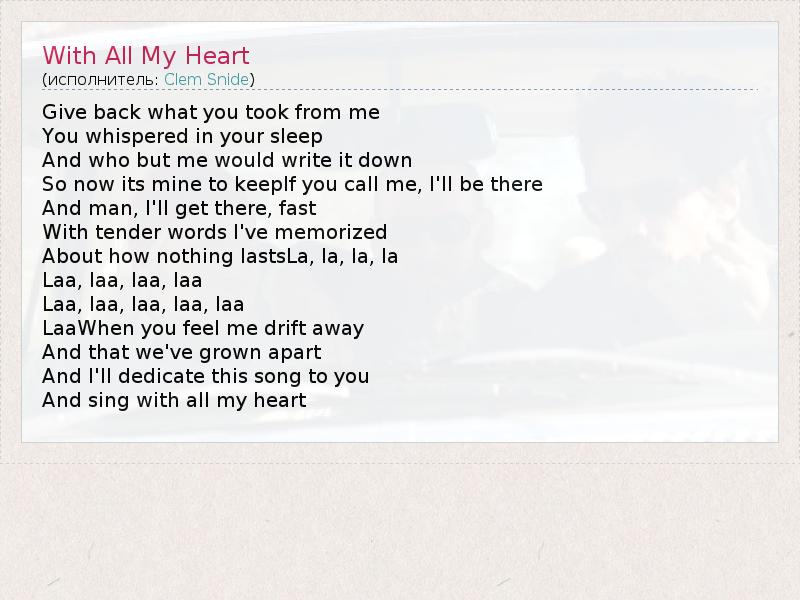 А как ты думаешь, о чем песня "With All My Heart" ?