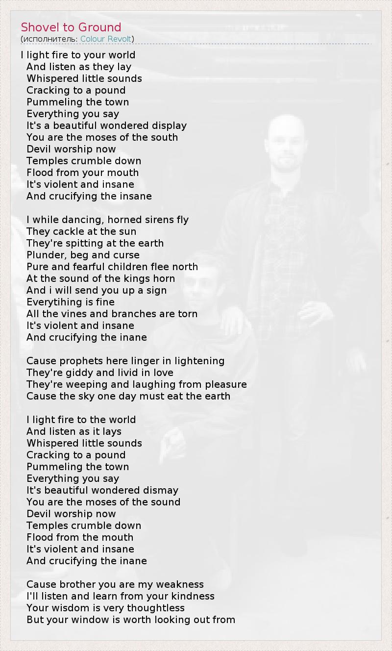 А как ты думаешь, о чем песня "Shovel to Ground" ?