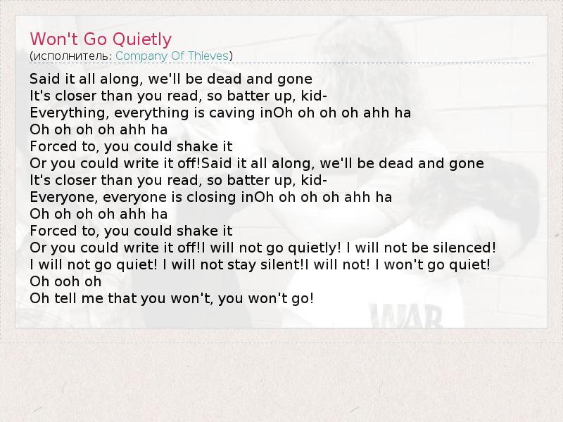 А как ты думаешь, о чем песня "Won't Go Quietly" ?