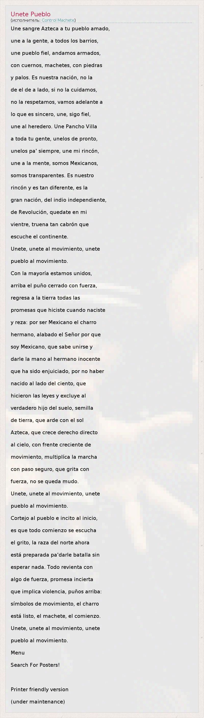 А как ты думаешь, о чем песня "Unete Pueblo" ?