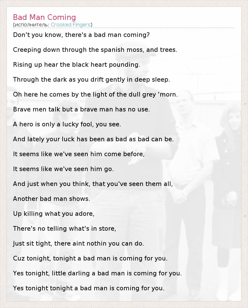 А как ты думаешь, о чем песня "Bad Man Coming" ?