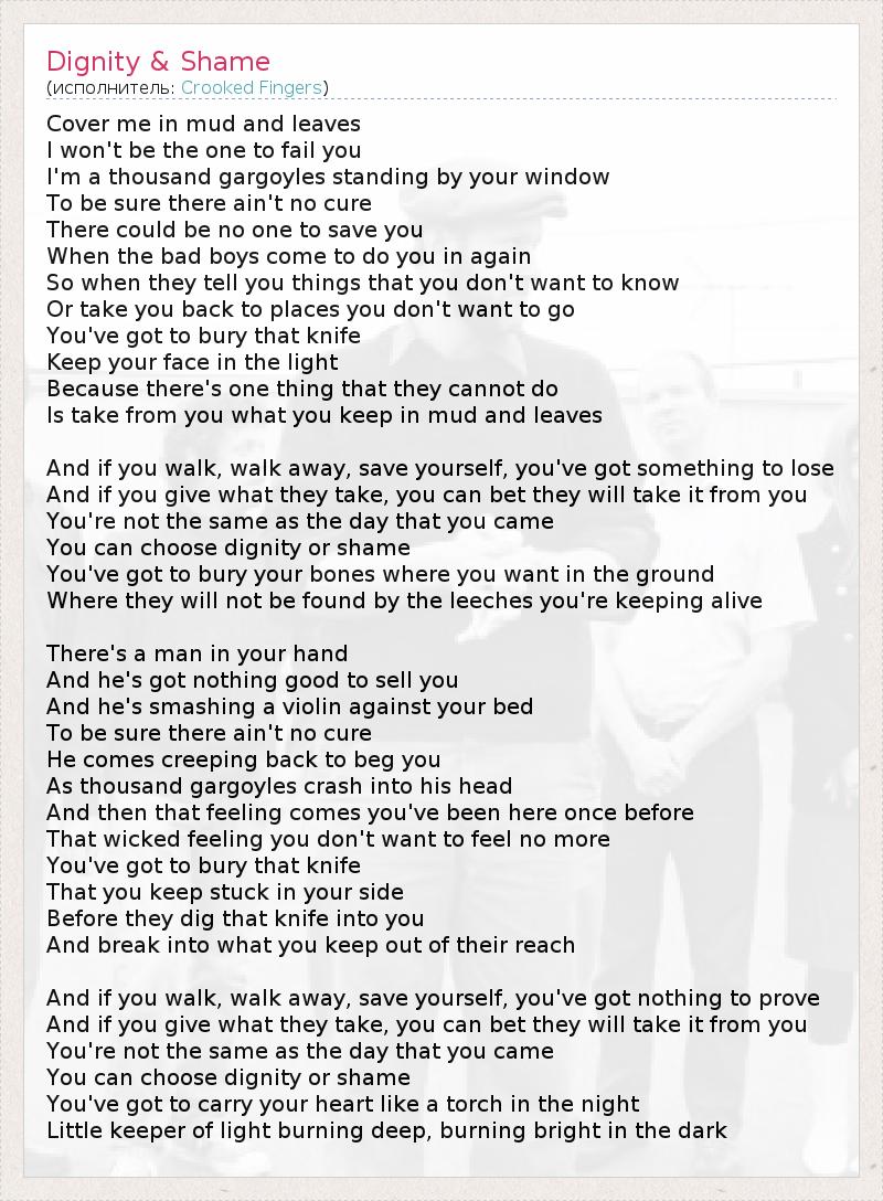 А как ты думаешь, о чем песня "Dignity & Shame" ?