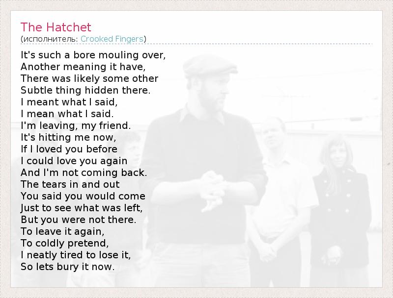 А как ты думаешь, о чем песня "The Hatchet" ?