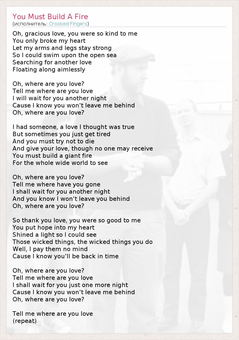 А как ты думаешь, о чем песня "You Must Build A Fire" ?