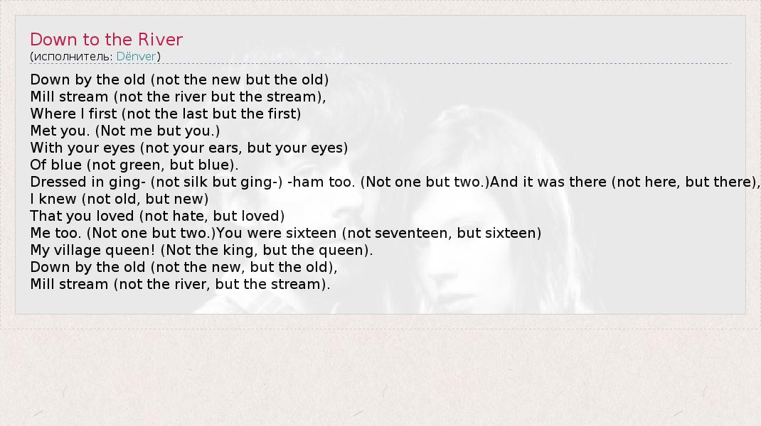 Dressed in ging- (not silk but ging-) -ham too. (Not one but two.)And it was there (not here, but there),