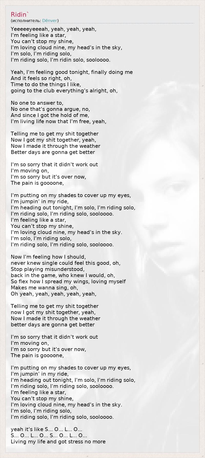I'm riding solo, I'm riding solo, sooloooo.