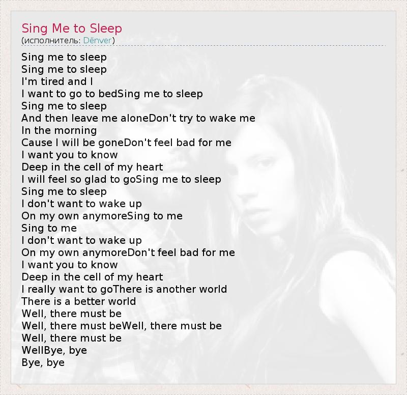 А как ты думаешь, о чем песня "Sing Me to Sleep" ?