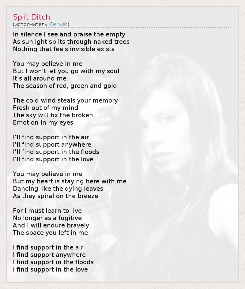 А как ты думаешь, о чем песня "Split Ditch" ?