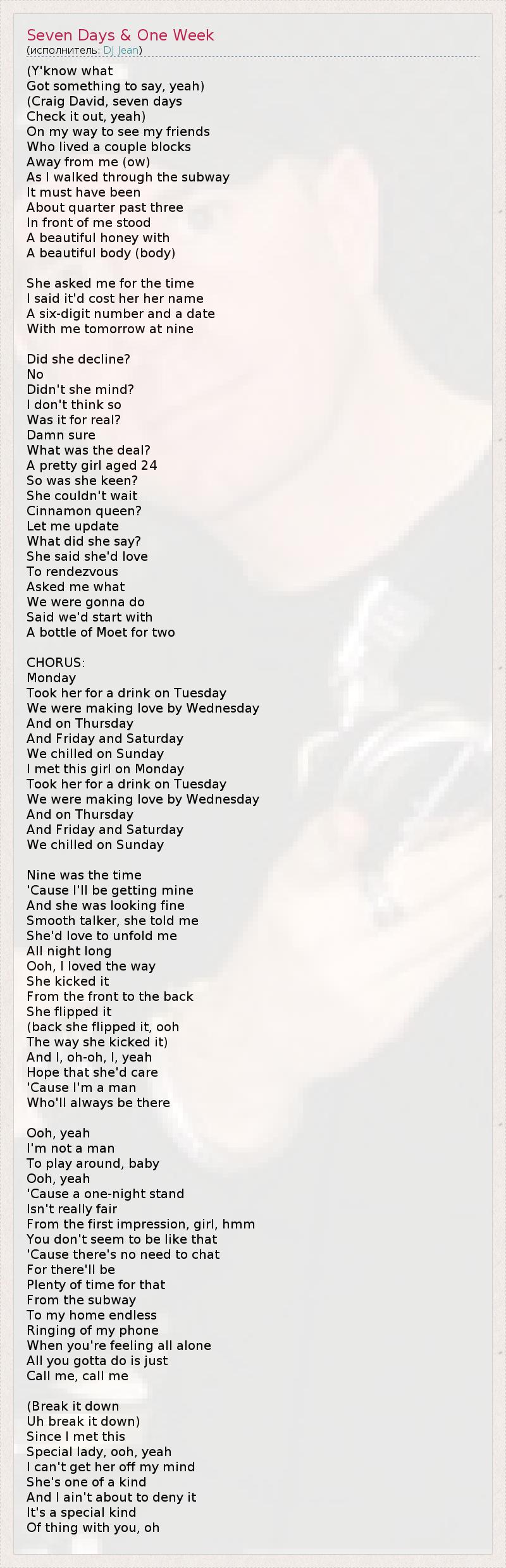 А как ты думаешь, о чем песня "Seven Days & One Week" ?