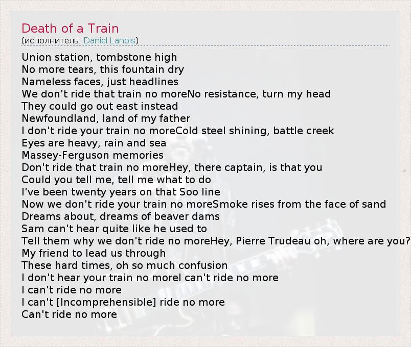А как ты думаешь, о чем песня "Death of a Train" ?