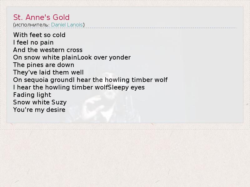 А как ты думаешь, о чем песня "St. Anne's Gold" ?
