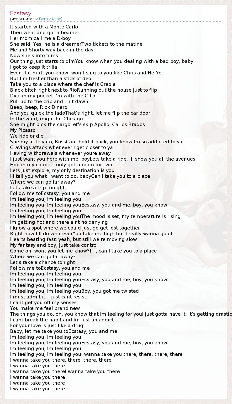 А как ты думаешь, о чем песня "Ecstasy" ?