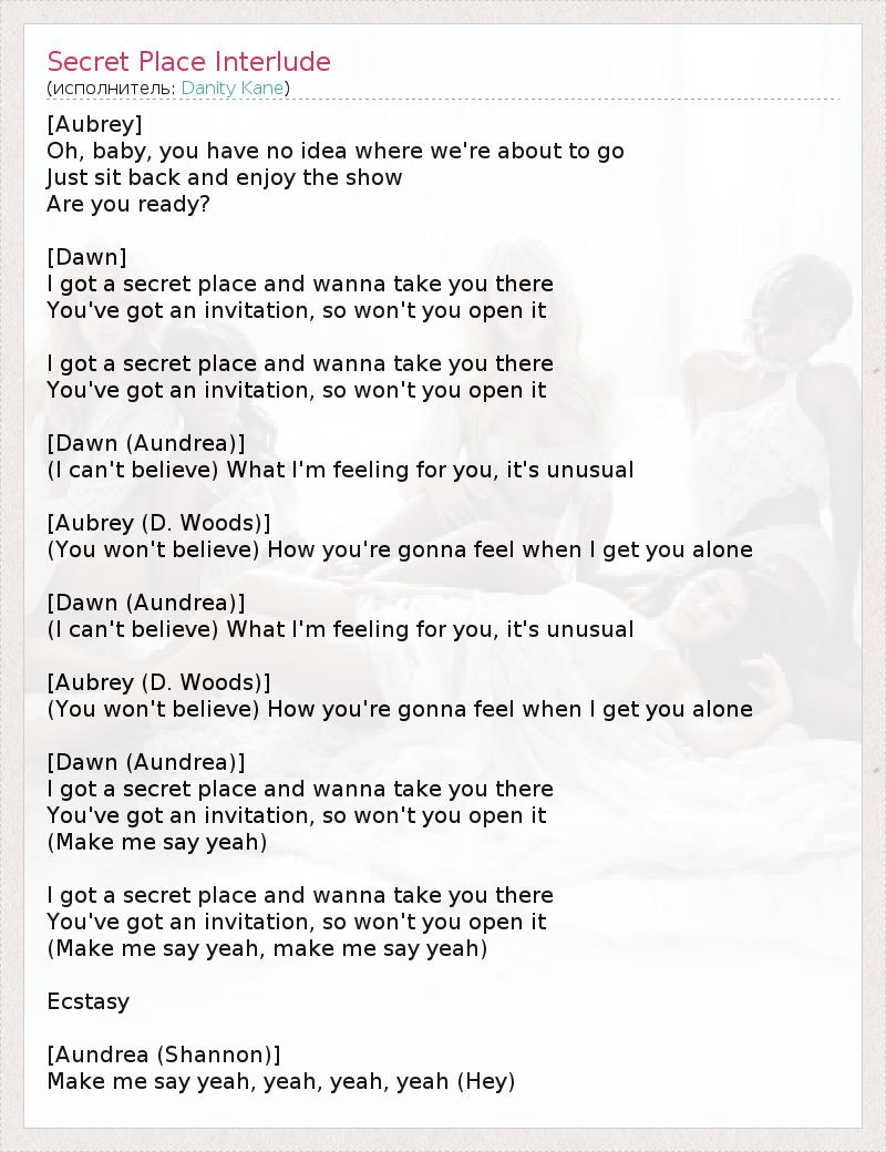 А как ты думаешь, о чем песня "Secret Place Interlude" ?