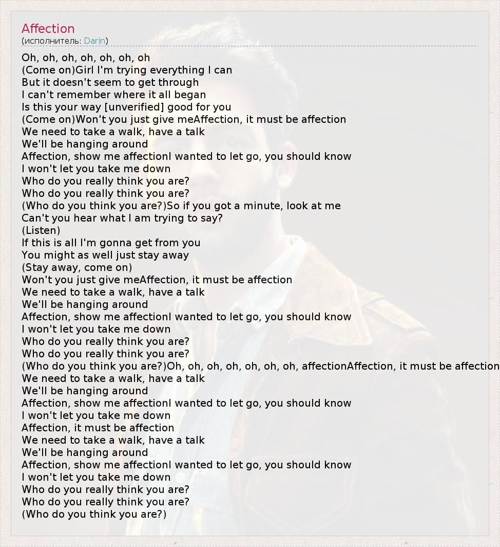 (Who do you think you are?)Oh, oh, oh, oh, oh, oh, oh, affectionAffection, it must be affection