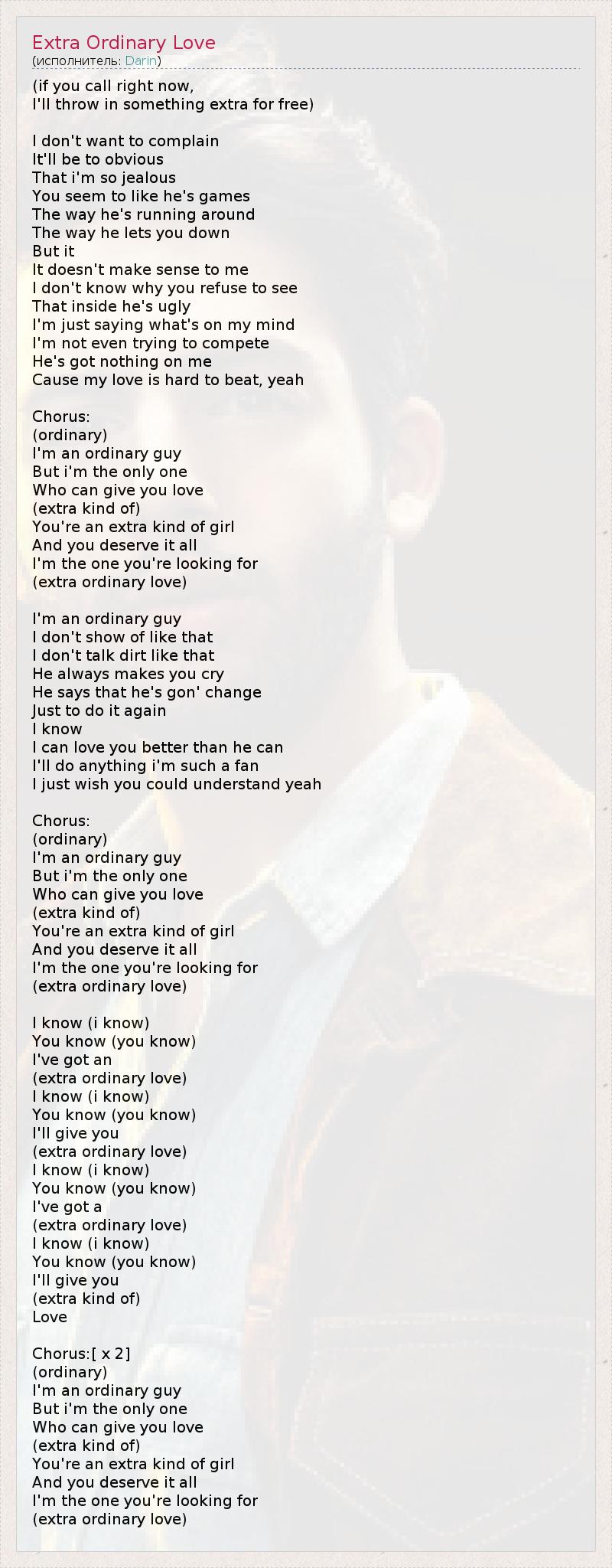 А как ты думаешь, о чем песня "Extra Ordinary Love" ?