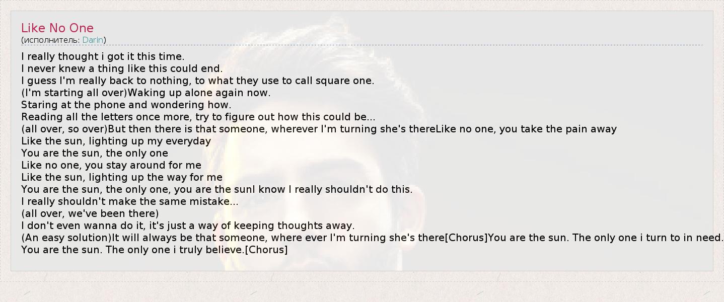 (all over, so over)But then there is that someone, wherever I'm turning she's thereLike no one, you take the pain away