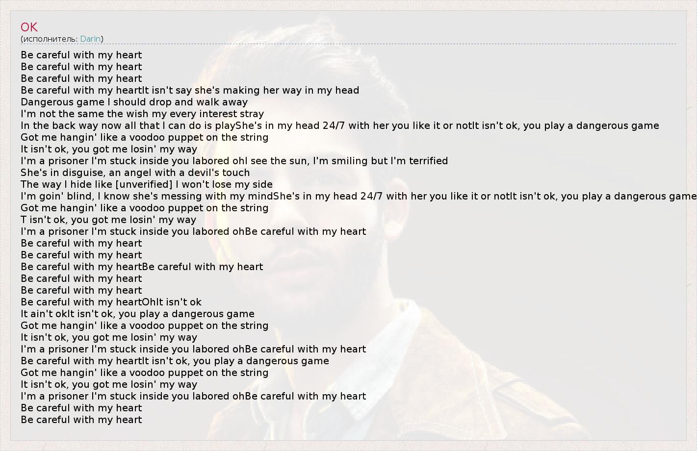 Be careful with my heartIt isn't ok, you play a dangerous game