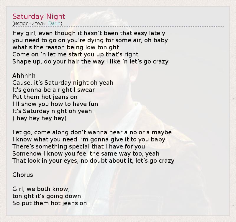 А как ты думаешь, о чем песня "Saturday Night" ?