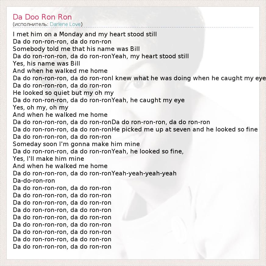Da do ron-ron-ron, da do ron-ronYeah, my heart stood still