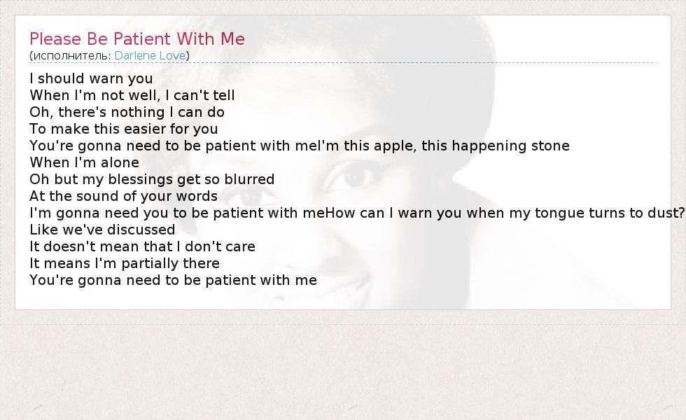 А как ты думаешь, о чем песня "Please Be Patient With Me" ?