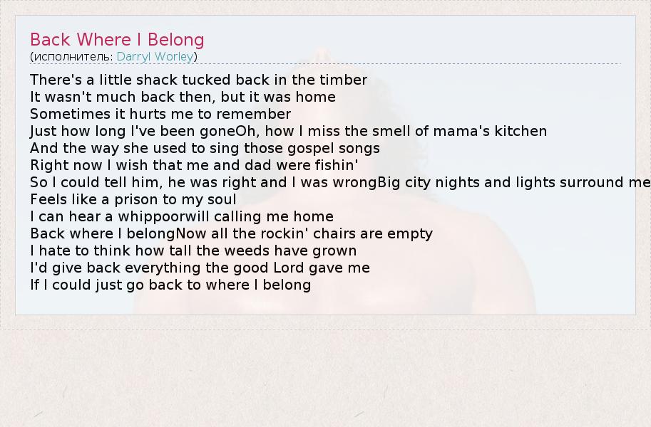 А как ты думаешь, о чем песня "Back Where I Belong" ?